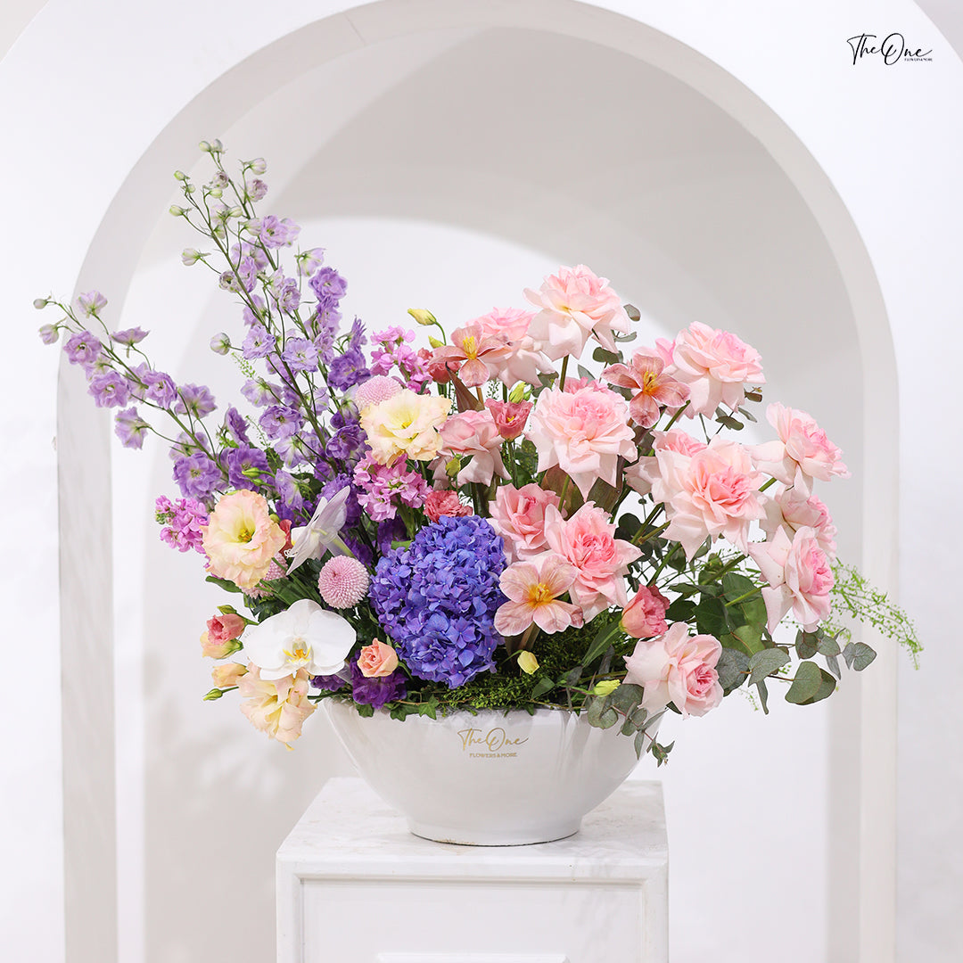 ارتقِ بمساحتك مع تنسيقاتنا الرائعة - مزيجٌ مثاليٌّ من الفن والطبيعة. تُضفي تنسيقاتنا الزهرية المُصمّمة بخبرةٍ فائقةٍ حيويةً وجمالاً على أي غرفة، مُضفيةً شعوراً بالفخامة والرقي. أضف لمسةً من الأناقة إلى منزلك، أو امنحه هديةً تُجسّد جمالاً خالداً مع تنسيقاتنا.