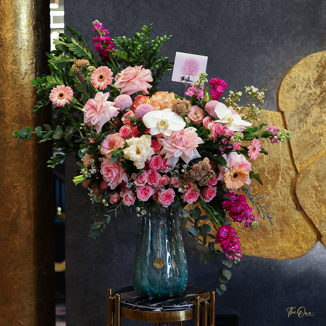 استمتع بفخامة تنسيقاتنا، المصنوعة بخبرة من أزهار فاخرة. أضف لمسةً من الرقي والأناقة إلى أي مناسبة. اجعل تنسيقاتنا محورًا مثاليًا لمناسبتك القادمة، أو هديةً رائعةً لأحبائك.
