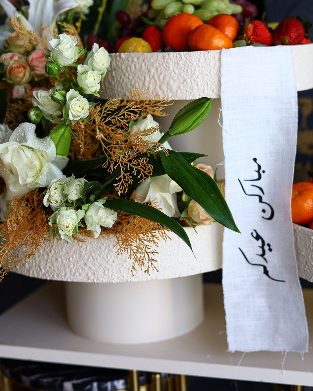 Perfect for family visits, Eid gatherings, and sophisticated gifting, this arrangement brings together beauty and freshness in one luxurious presentation.