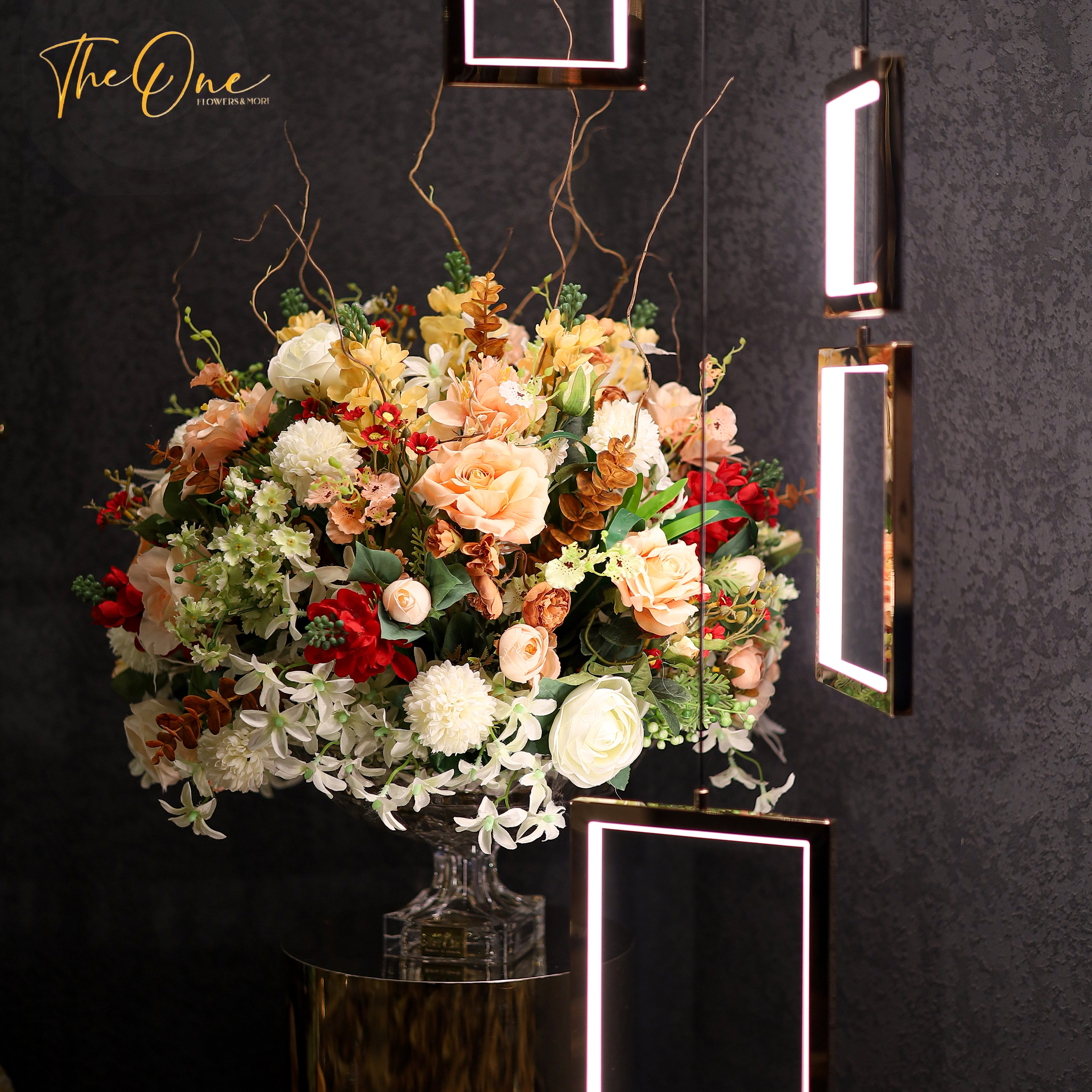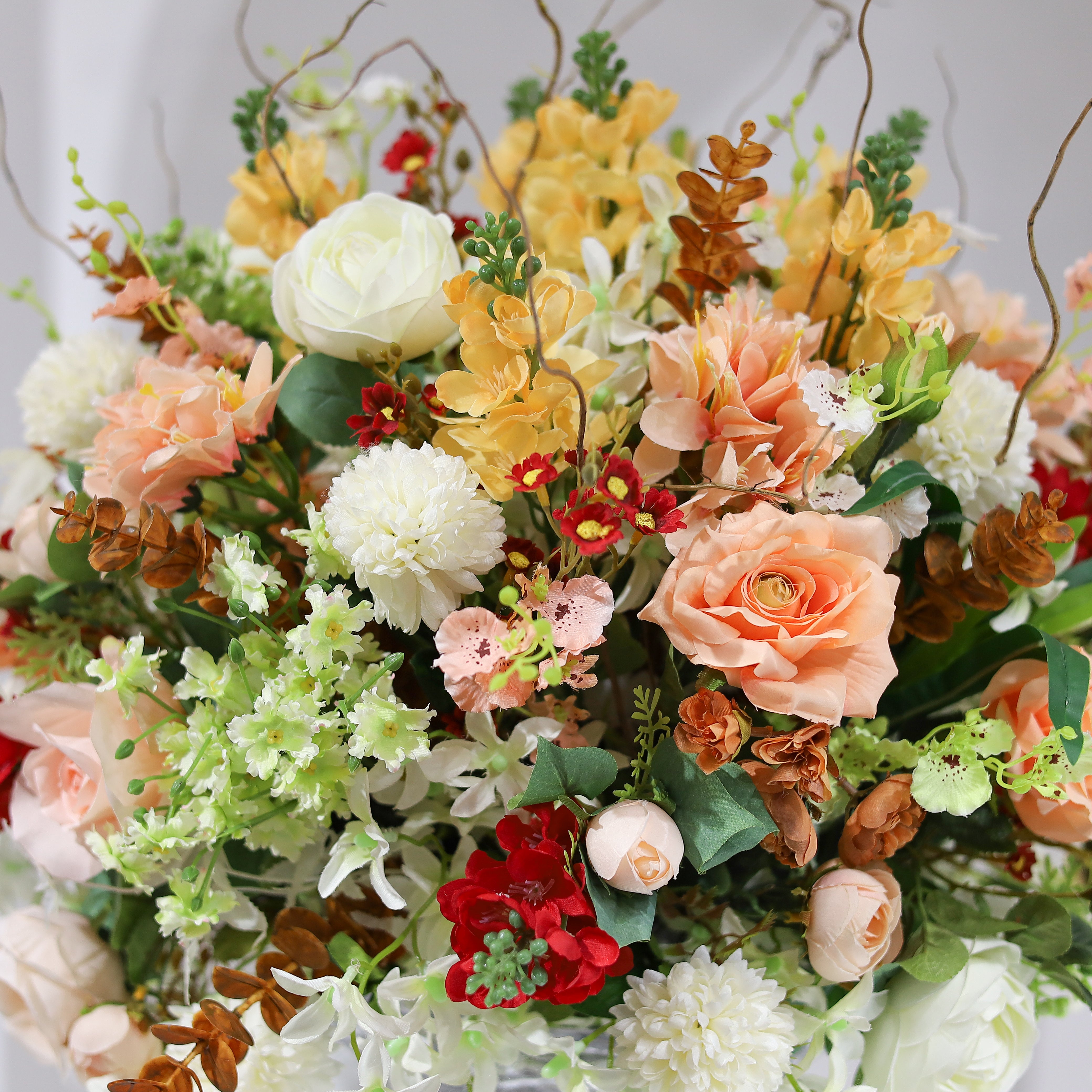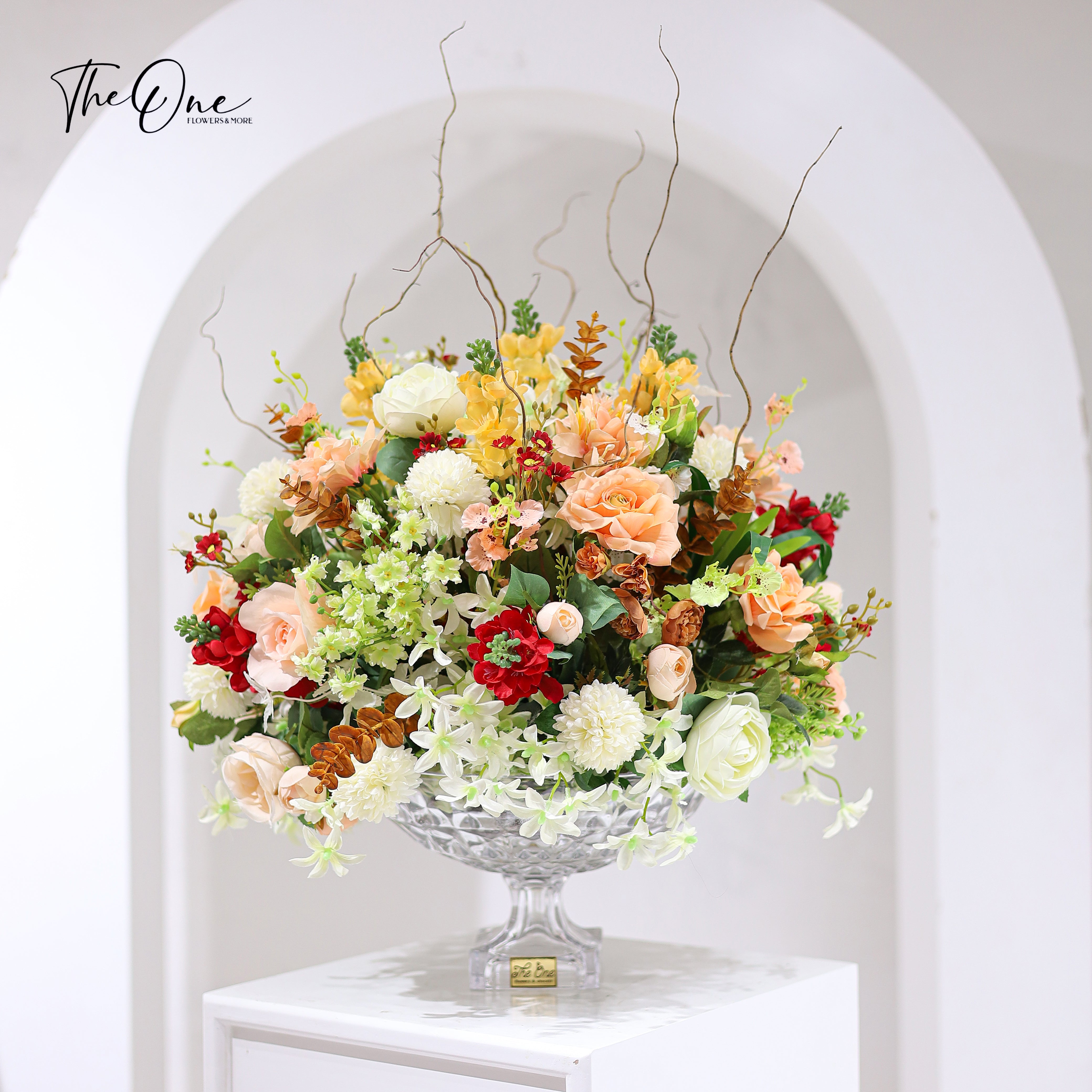 This beautiful set of artificial flowers is displayed in an alluring crystal vase, making it the perfect centerpiece for any space. Its timeless elegance and gorgeous craftsmanship will bring a touch of luxury to your home.