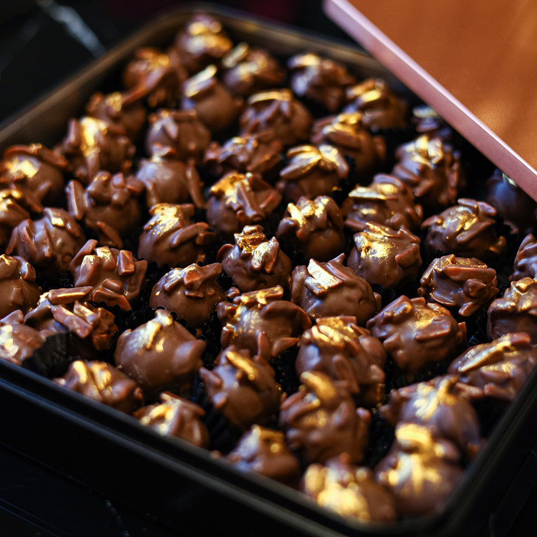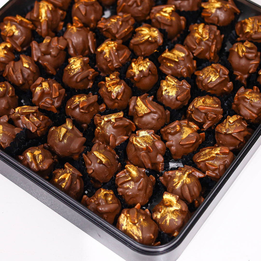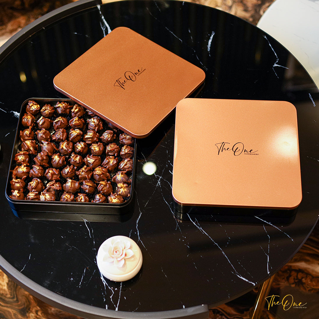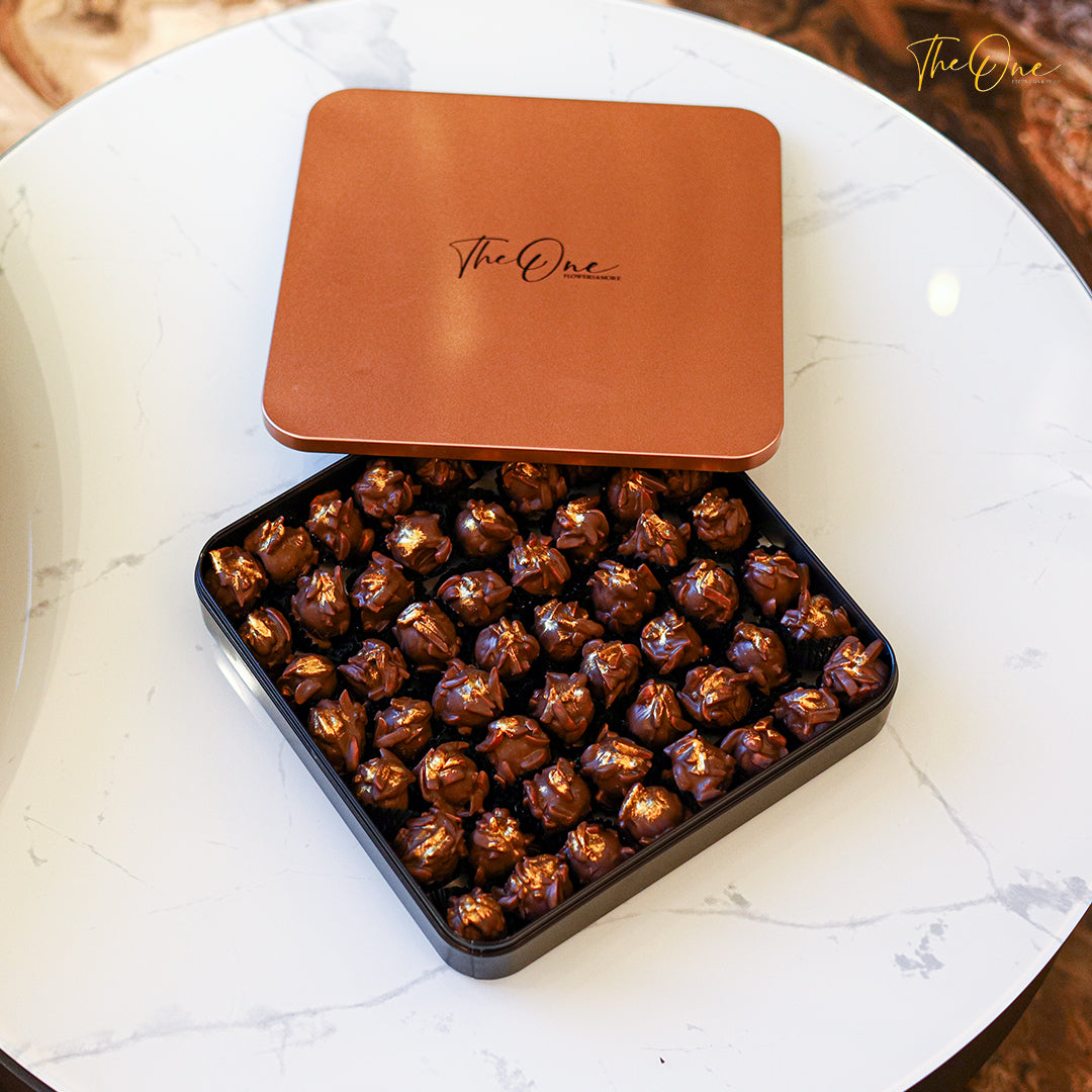 "Indulge in luxury with our exquisite chocolate stuffed with kinder and almonds. Savor the rich and velvety chocolate paired with the crunch of almonds and the sweetness of kinder. Perfect for a moment of indulgence or as a sophisticated gift for a loved one."