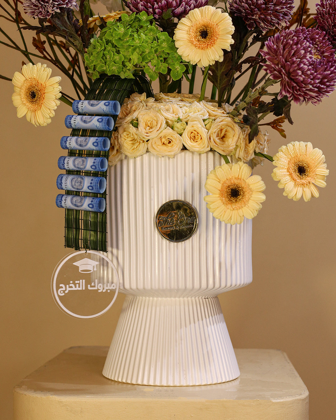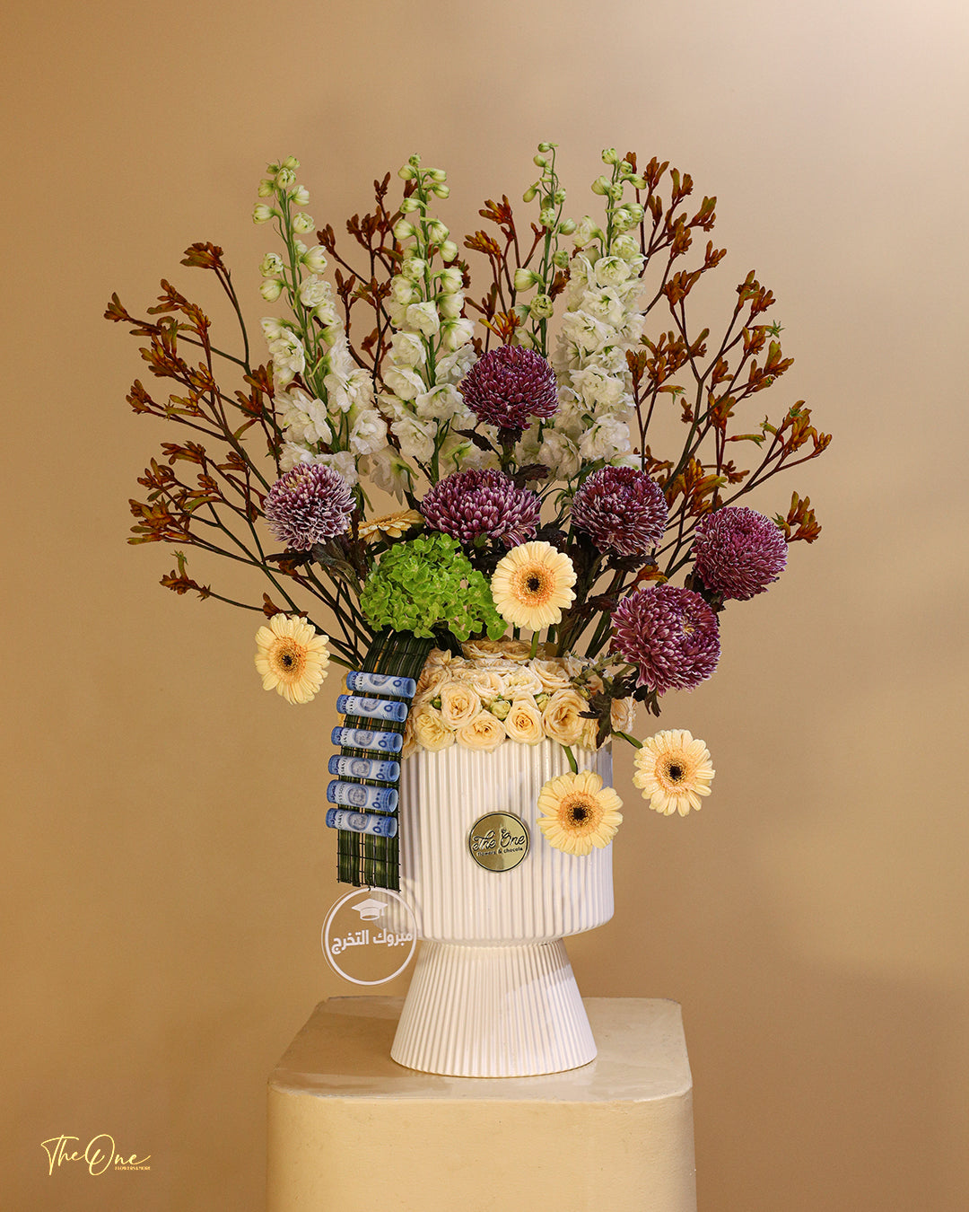 Celebrate success with elegance through this refined congratulatory gift from The One Flowers. Crafted to convey your heartfelt admiration, it combines timeless beauty with a sophisticated touch, making every achievement feel truly special. Perfect for honoring milestones with grace and style.