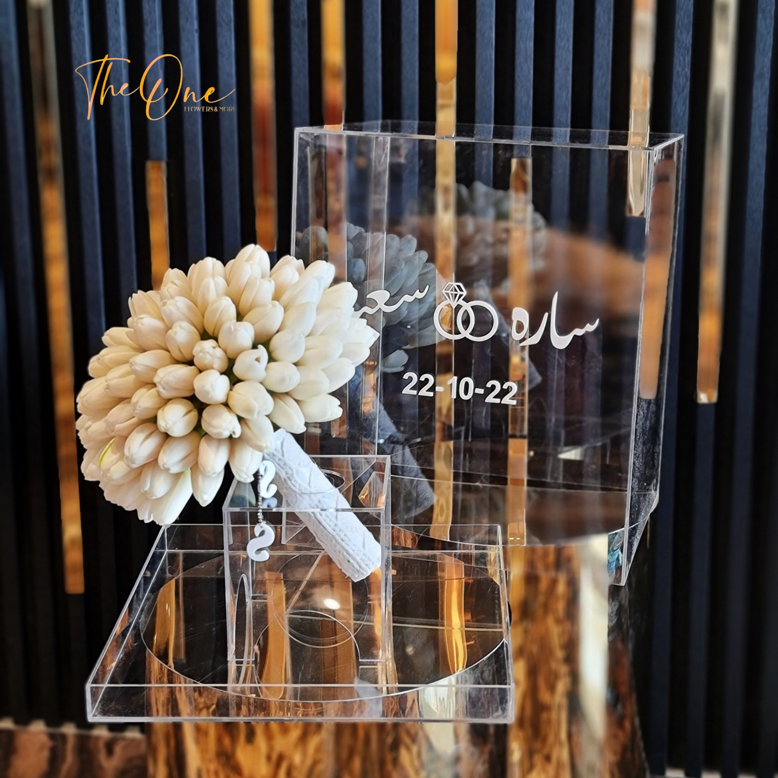 This luxurious bridal bouquet is the epitome of elegance and sophistication. Produced with the utmost attention to detail, the exquisite combination of lace and white tulips create a timelessly beautiful piece. Allow this lace and white tulip bridal bouquet to be a sparkling addition to your special day.