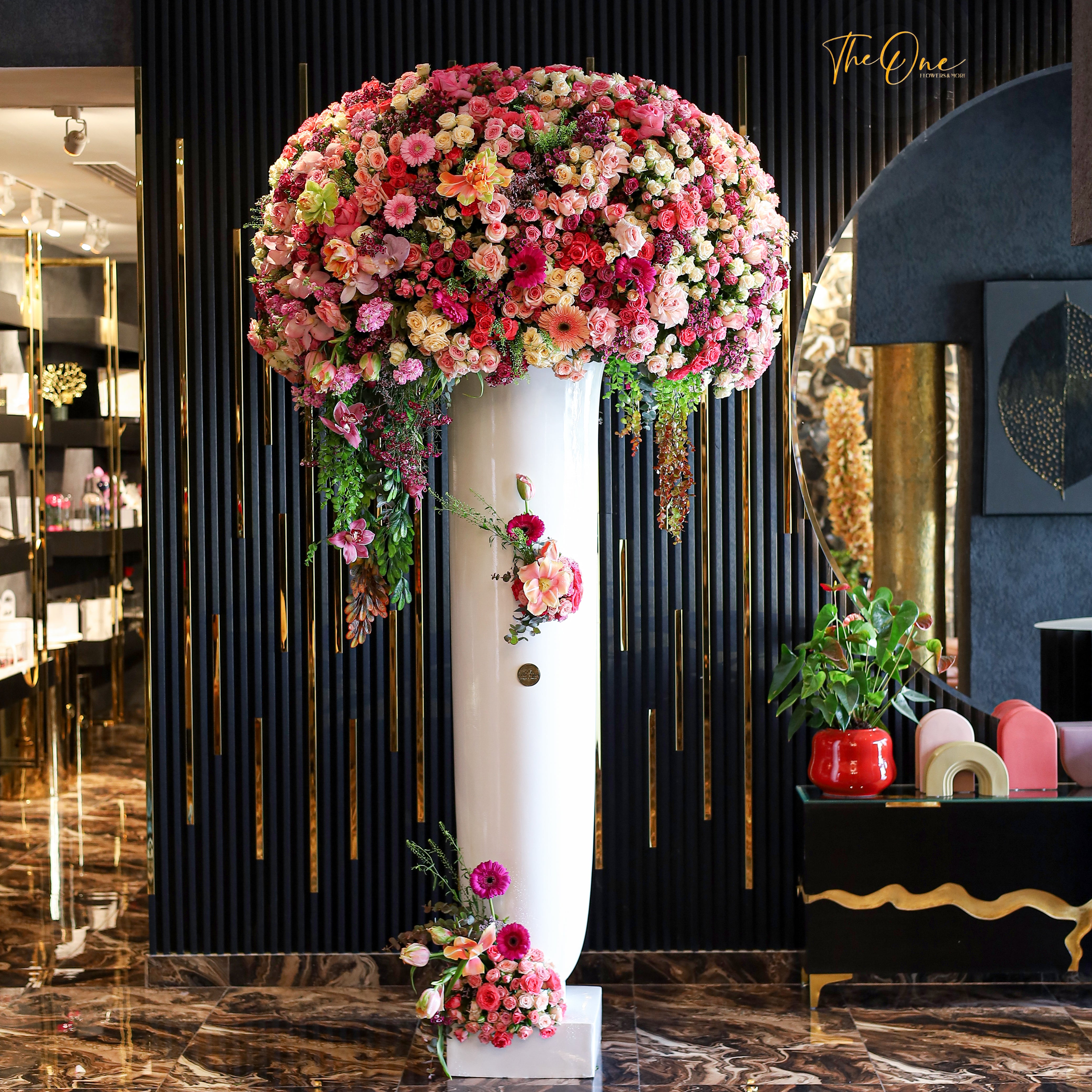 This stunning bundle of vibrant Bougainvillea, pink Carnation, and white Chrysanthemum flowers is the perfect way to spruce up any space, bringing a touch of sophistication and natural beauty. Its unique combination of wild and delicate blooms offers an abundance of luxury and visual appeal, creating an eye-catching display that will captivate all admirers.