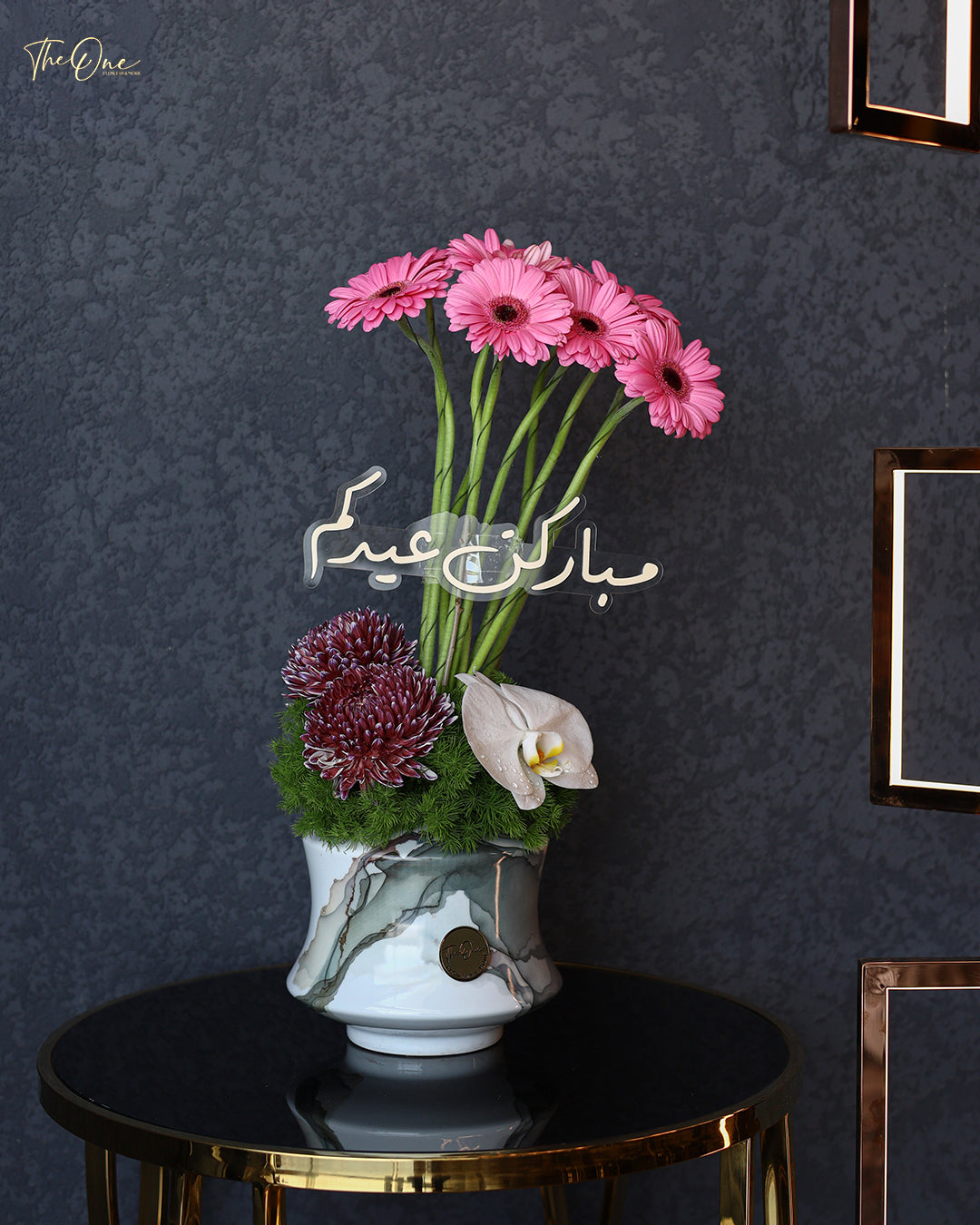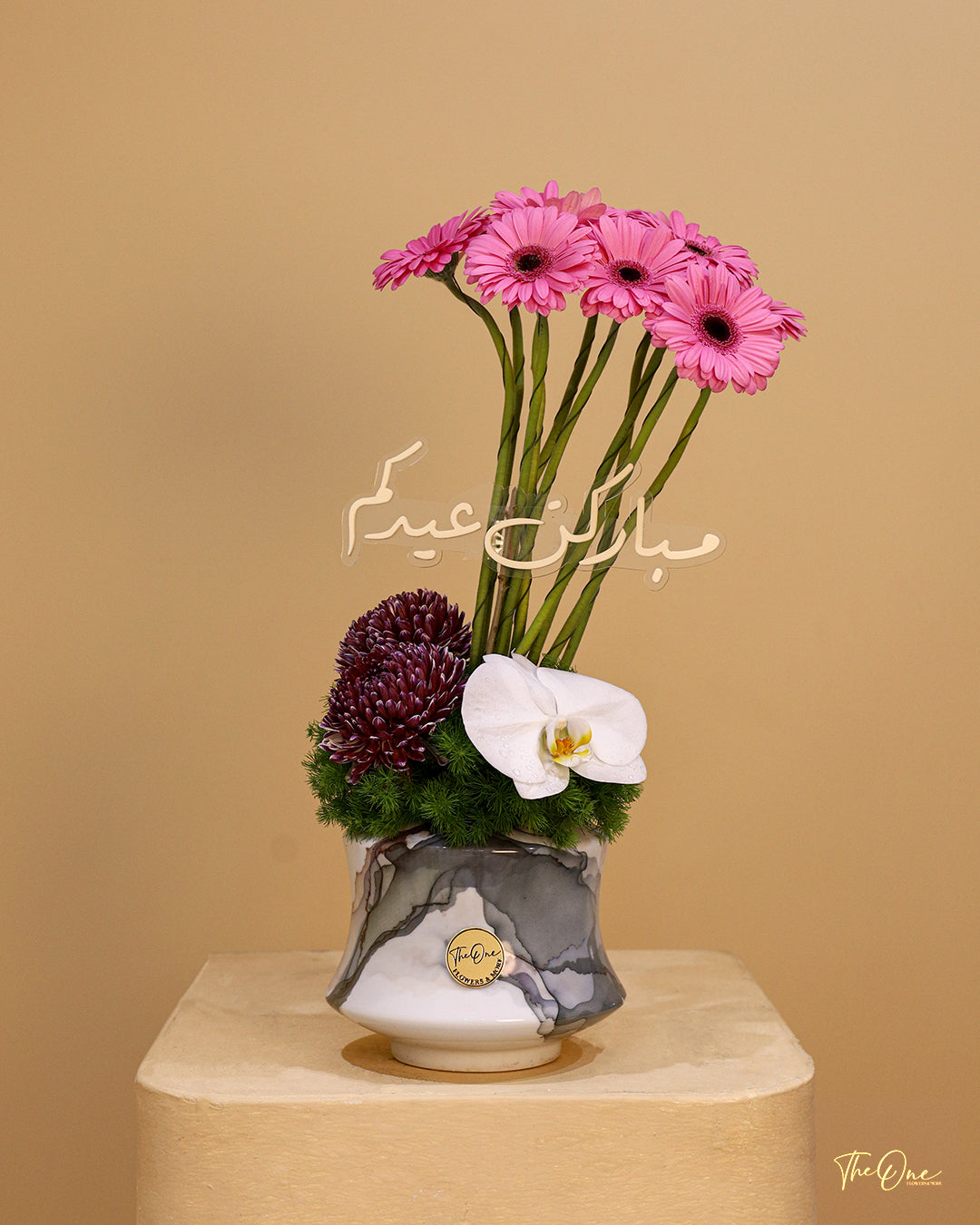 Celebrate the sacred festival of Eid al-Adha with our exquisite floral arrangement. Meticulously crafted to honor this significant occasion, these blooms embody the spirit of sacrifice and devotion. A refined composition of premium flowers that serves as a meaningful gift or elegant décor for your festive gatherings, reflecting both tradition and contemporary sophistication.