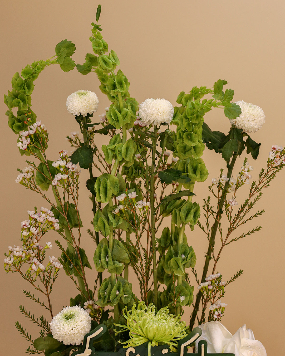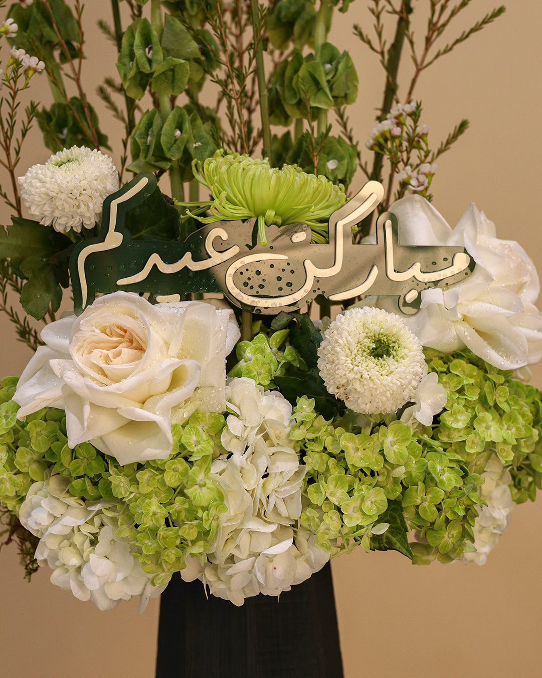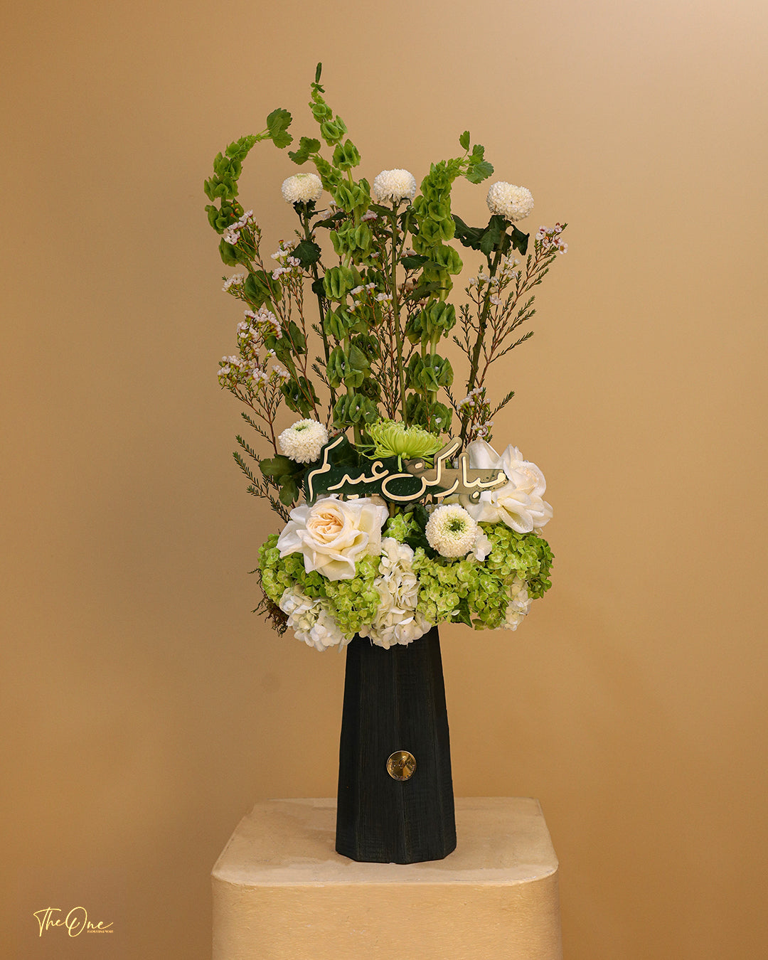 Celebrate the sacred festival of Eid al-Adha with our exquisite floral arrangement. Meticulously crafted to honor this significant occasion, these blooms embody the spirit of sacrifice and devotion. A refined composition of premium flowers that serves as a meaningful gift or elegant décor for your festive gatherings, reflecting both tradition and contemporary sophistication.