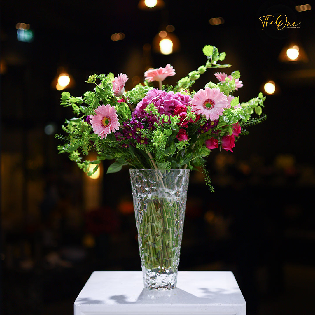 Indulge in the ultimate luxury with our exquisite Arrangement. Crafted with care, our arrangement of flowers will bring elegance and sophistication to any space. Transform your surroundings with the beauty and fragrance of our carefully curated selection. Elevate your atmosphere and treat yourself to the finest arrangement of flowers.