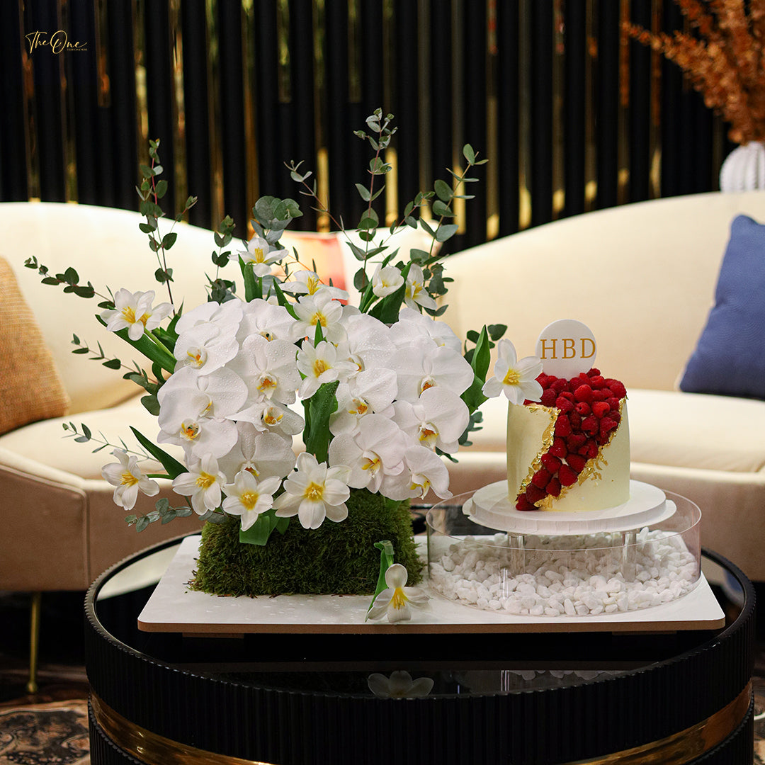 Indulge in the ultimate luxury with our Flowers & Cake combination. Our expertly crafted flowers and delectable cake will elevate any occasion into a sophisticated affair. Let the floral aromas and sweet flavors transport you to a world of elegance. Perfect for weddings, parties, and any special celebration.