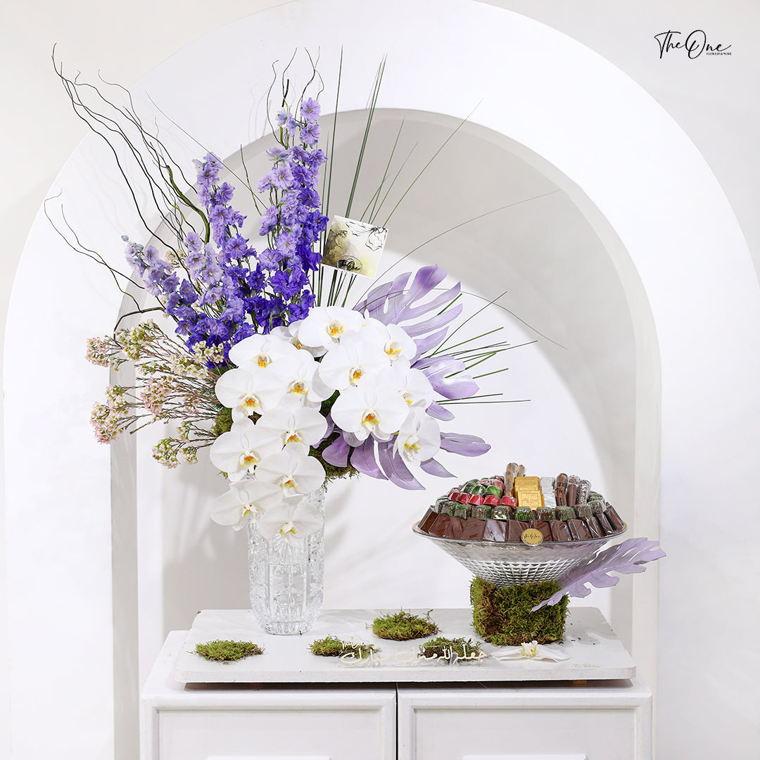Indulge in the perfect combination of beauty and decadence with our Flowers & Chocolate set. Featuring a stunning bouquet of fresh flowers and rich, luxurious chocolates, this elegant gift is sure to delight and impress. Treat yourself or someone special to this exquisite experience.