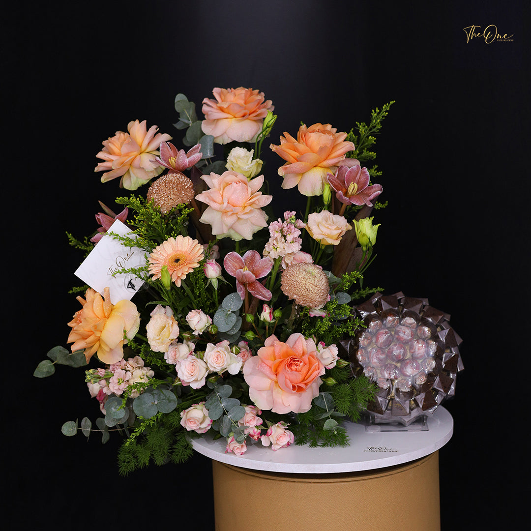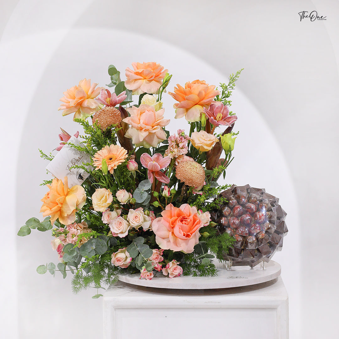 Indulge in the perfect combination of delicate beauty and decadent taste with our Flowers & Chocolate set. Satisfy your senses with the sweet aroma of fresh flowers and the rich flavors of premium chocolate, a luxurious treat for yourself or a thoughtful gift for a loved one. Elevate your experience with our exclusive blend of nature and indulgence.