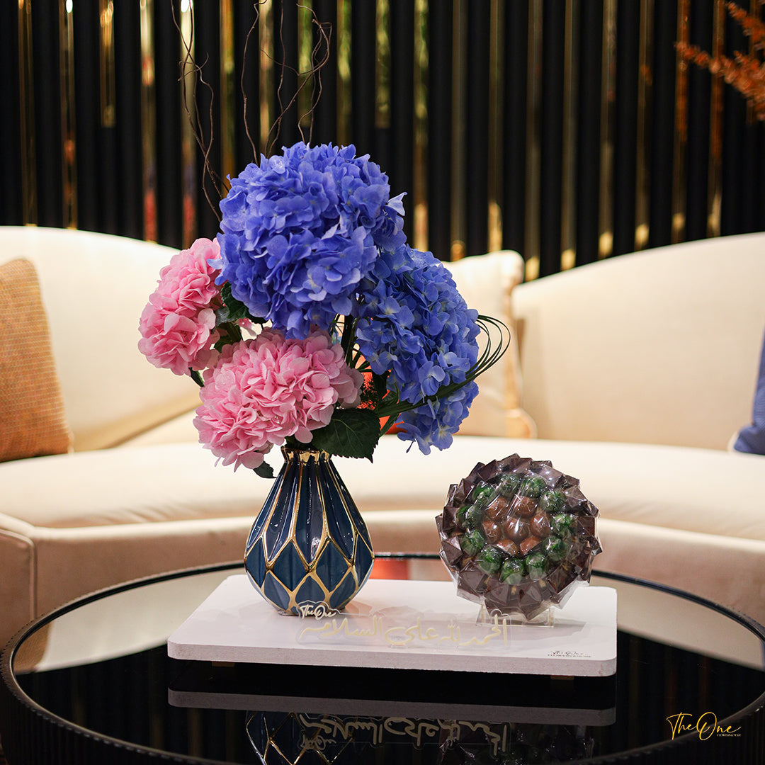 Indulge in the perfect combination of beauty and indulgence with our Flowers & Chocolate set. Adorn your living space with fresh, vibrant flowers while treating your taste buds to the rich and decadent taste of gourmet chocolate. Elevate your senses with this luxurious pairing.
