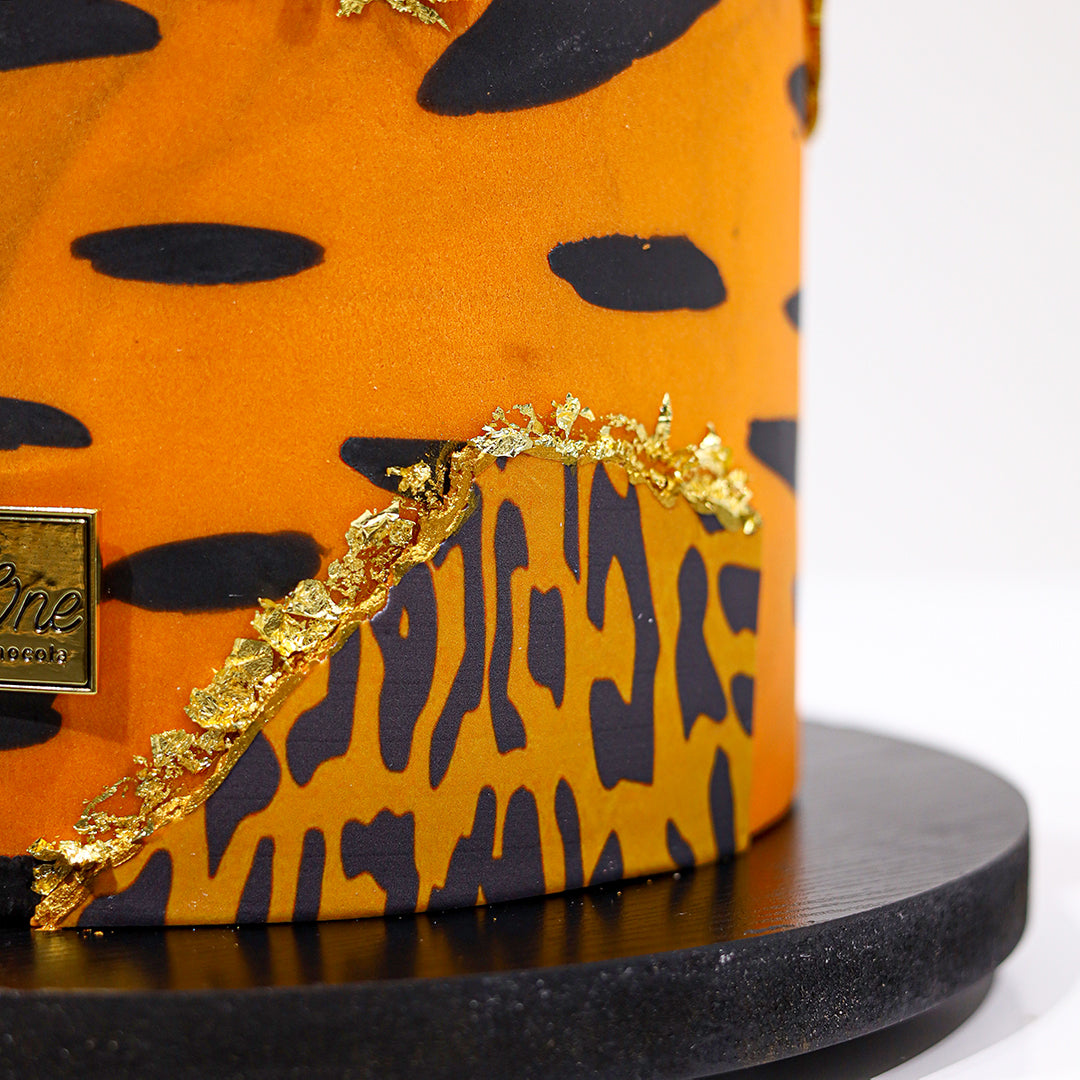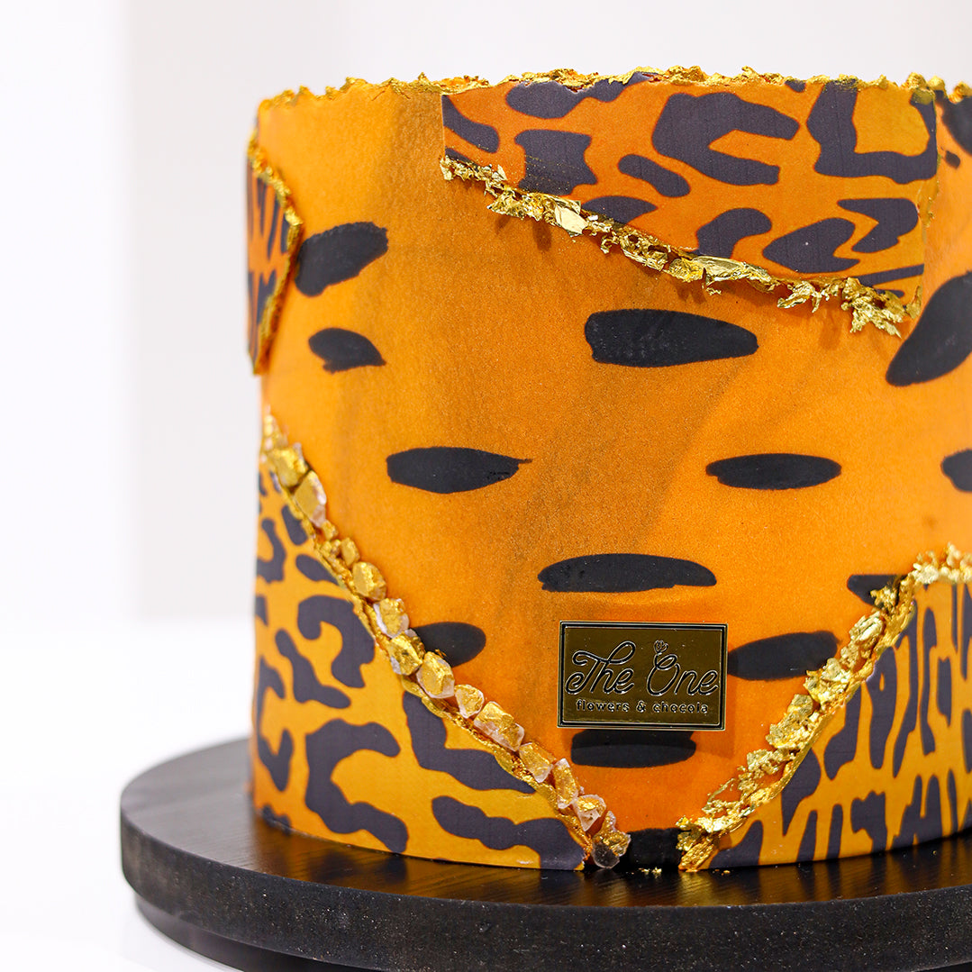 Indulge in the intricate elegance of our gilded cake. Exquisite decoration comes together with a moist and tantalizing texture, creating a delicacy that is both delectable and luxurious. Let yourself be transported to a dreamy realm of beauty and opulence.