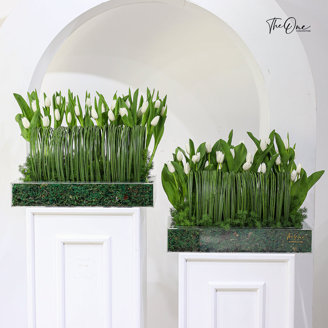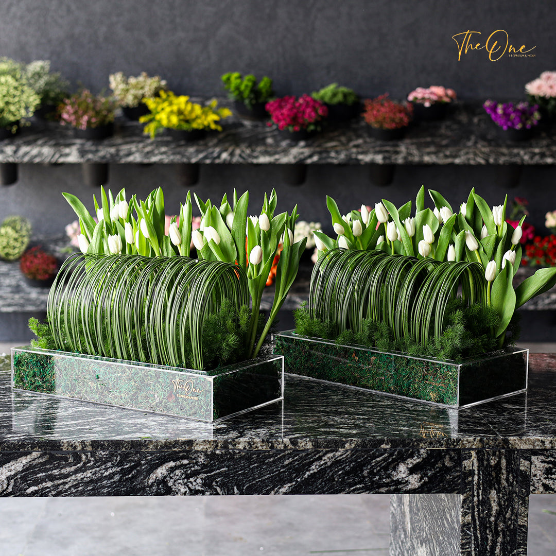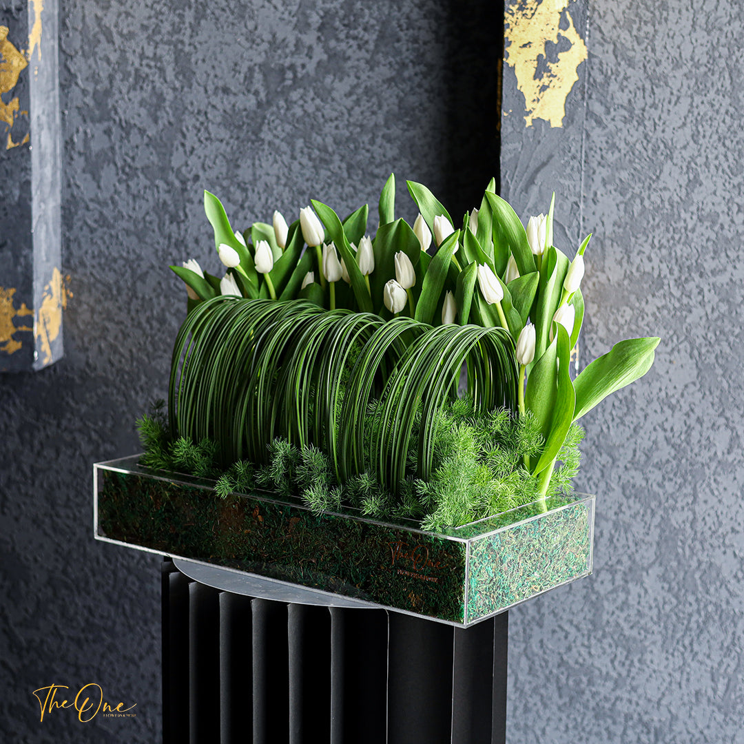 This tulip box is a perfect way to bring nature's beauty to your home. The white colors of the tulips make elegant and vibrant bouquets that look great in any room. With this tulip box, you can enjoy the natural beauty of tulips any time of the year.